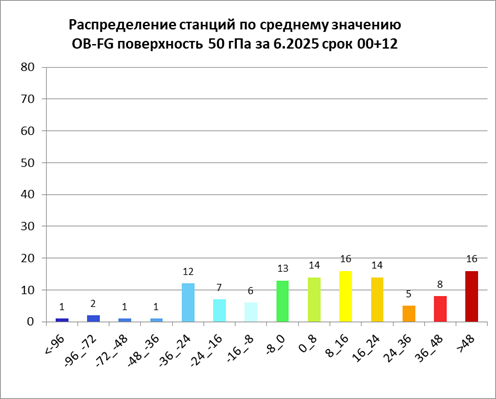 Статистика значений "наблюдение-минус-прогноз" ("OB-FG").