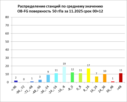 Статистика значений "наблюдение-минус-прогноз" ("OB-FG").