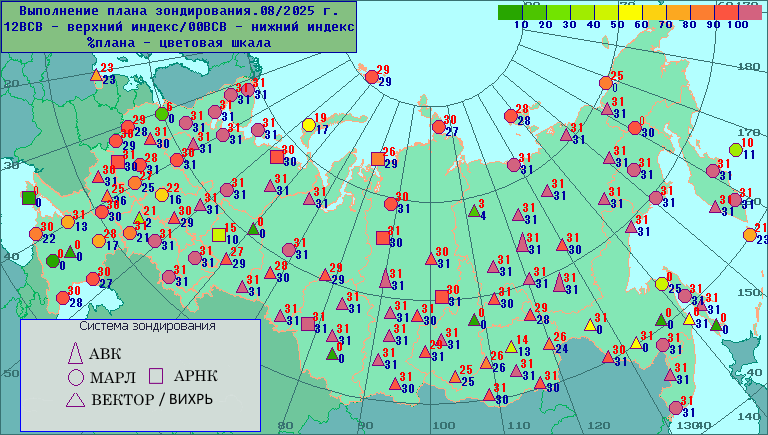 Показатели функционирования аэрологической сети РФ за Август 2025 года.