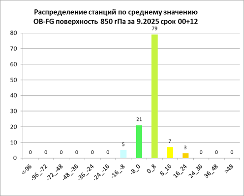 Статистика значений "наблюдение-минус-прогноз" ("OB-FG").