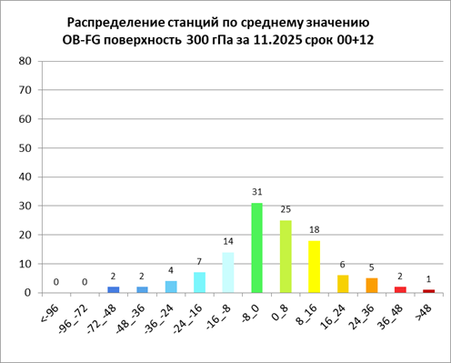 Аэрологическая сеть Росгидромета. Геопотенциал. 300 ГПа